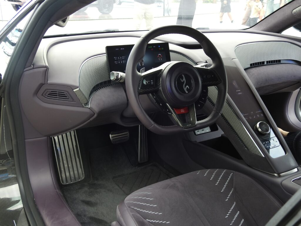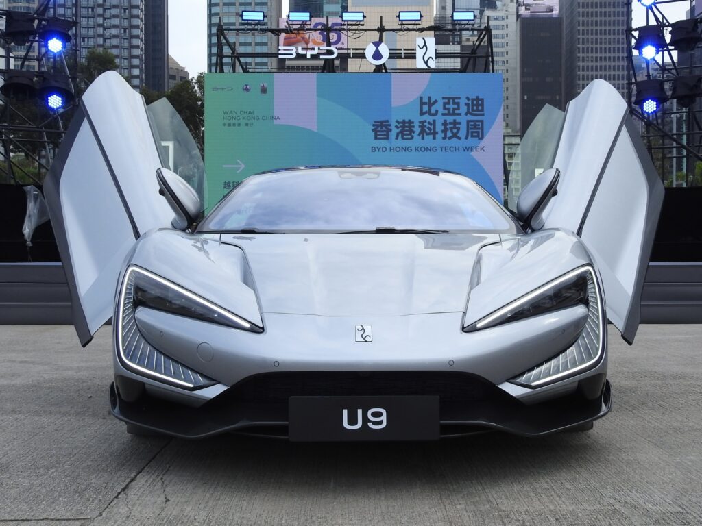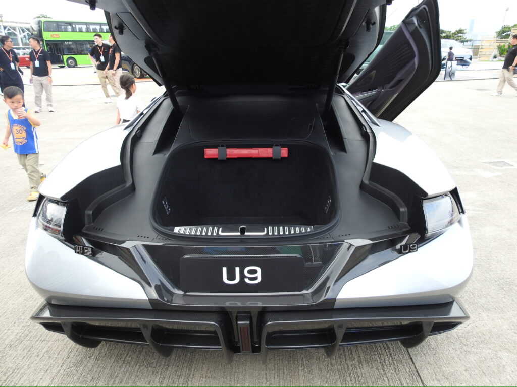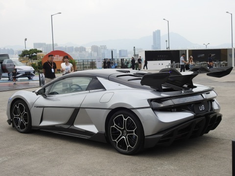 U9純電跑車以流線型車身搭配主動空氣力學套件,展現極致速度美學。據介紹,U9加速性能媲美超跑,並配備智能懸掛系統,兼顧操控與舒適。