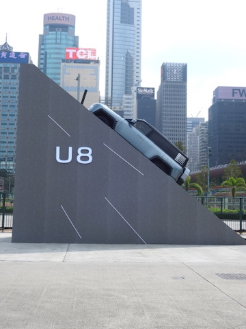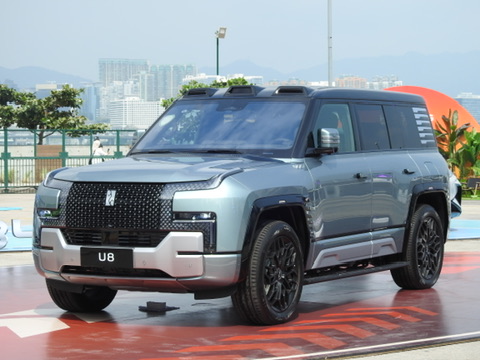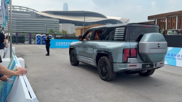 U8定位為豪華硬派越野車,配備四輪獨立電機,具備「原地掉頭」及「蟹行模式」等創新功能。現場設置特製平台,U8以38度傾斜姿態展示,配合維港海景,成為打卡熱點。