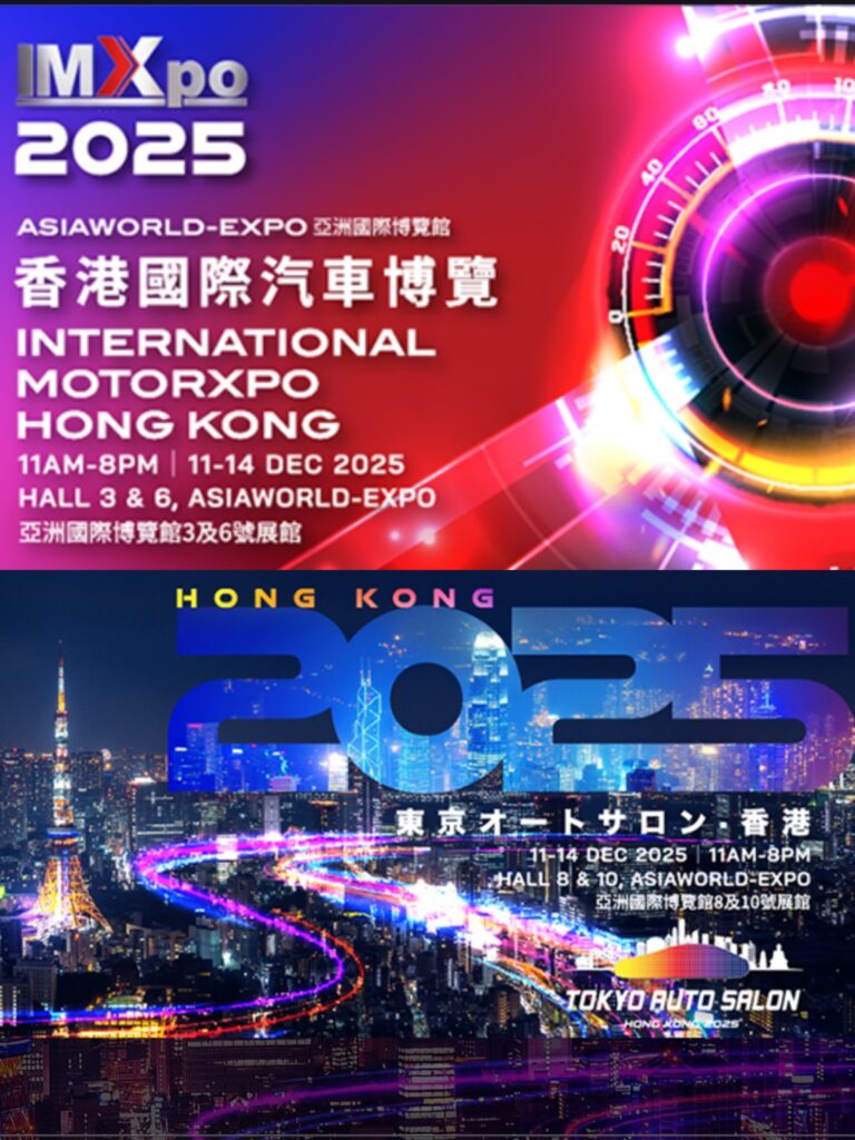 由國際車展(香港)管理有限公司以及香港汽車商會聯合主辦嘅「香港國際汽車博覽(IMXpo)2025」暨「東京改裝車展·香港(TAS·HK)2025」,2025年12月11~14號㇐連四日假亞洲國際博覽館隆重舉行。呢次聯展標誌香港、日本兩大汽車展覽嘜頭首次深度合作,集新車展示、汽車科技、日本改裝文化、本地汽車文化於㇐體,為香港以致亞洲觀眾創出跨領域、全方位汽車文化體驗。